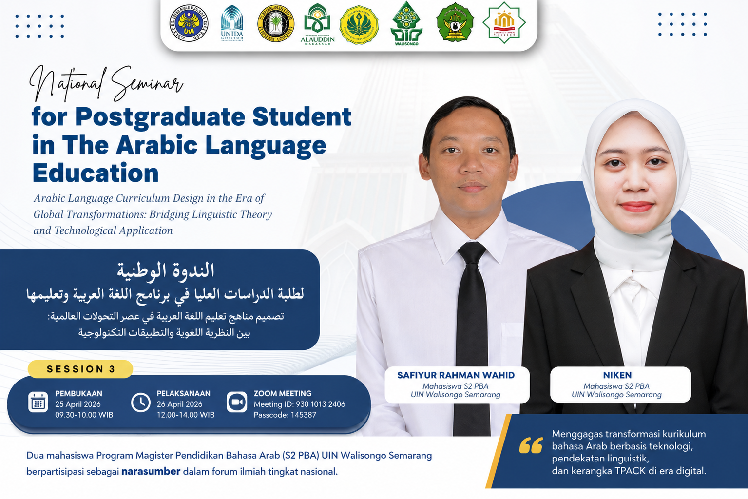 Dua mahasiswa Program Magister Pendidikan Bahasa Arab (S2 PBA) UIN Walisongo Semarang turut berpartisipasi dalam National Seminary for Postgraduate…